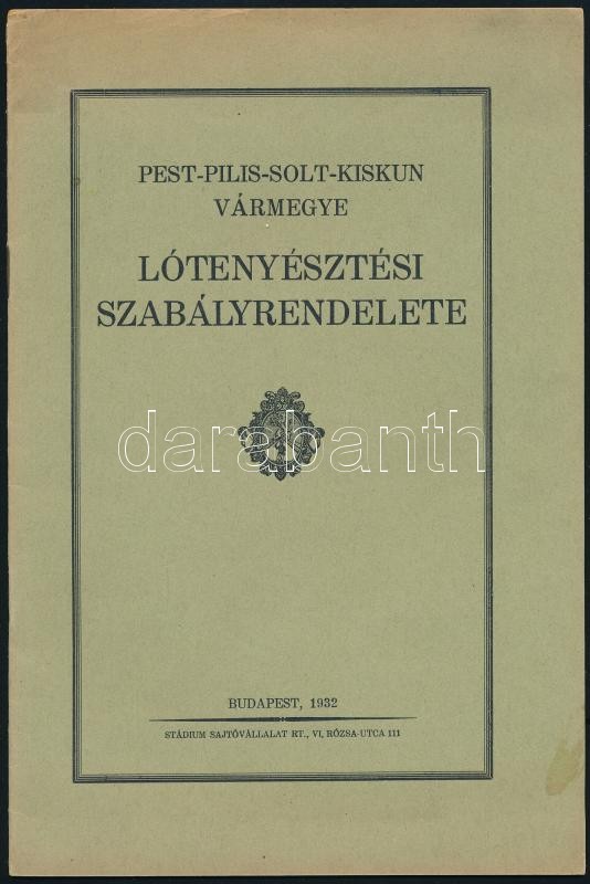 1932 Pest-Pilis-Solt-Kiskun Vármegye Lótenyésztési Szabályrendelete. B... https://www.darabanth.com/de/354-Fernauktion/354.0/Kunst-Dokumente-andere-Sammelgebiete/Drucksachen~500030/1932-Pest-Pilis-Solt-Kiskun-Varmegye-Lotenyesztesi-Szabalyrendelete-Bp-1932-Fuzet-papir-k~II2023770