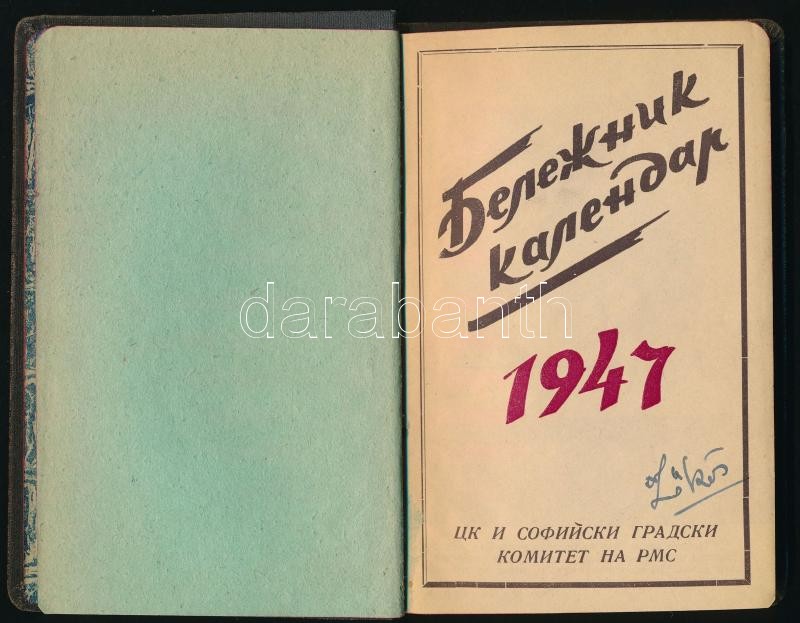 1947 Bolgár zsebnaptár, a világtörténelem és a kommunizmus fontosabb e... https://www.darabanth.com/de/354-Fernauktion/354.0/Kunst-Dokumente-andere-Sammelgebiete/Drucksachen~500030/1947-Bolgar-zsebnaptar-a-vilagtortenelem-es-a-kommunizmus-fontosabb-esemenyeinek-feltuntetC3~II2021792