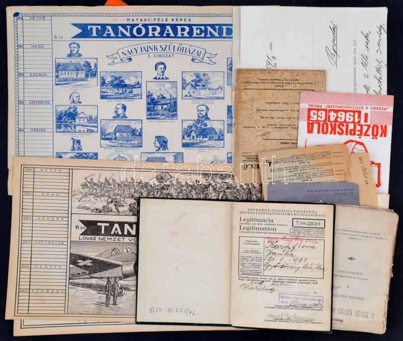 Beschreibung: Vegyes papírrégiség tétel: okmányok, reklám, órarend,