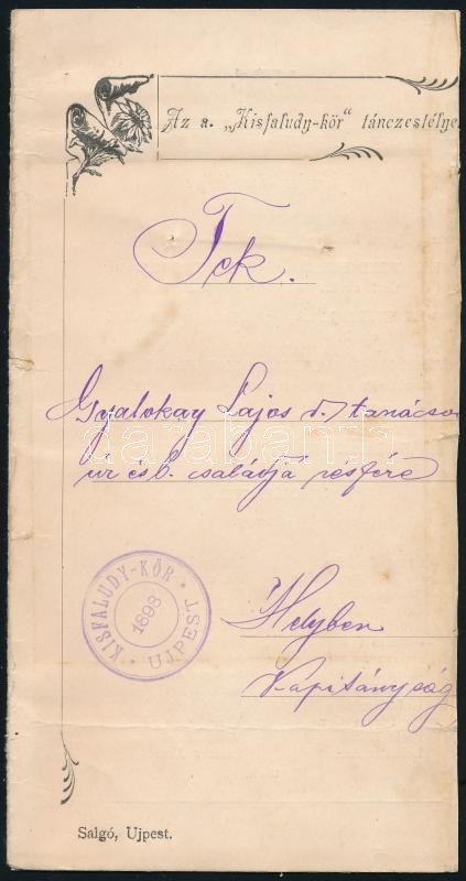 cca 1900 Az ujpesti Kisfaludy kör táncestélyének meghívója 6p. https://www.darabanth.com/de/354-Fernauktion/354.0/Kunst-Dokumente-andere-Sammelgebiete/Drucksachen~500030/cca-1900-Az-ujpesti-Kisfaludy-kor-tancestelyenek-meghivoja-6p~II2023902