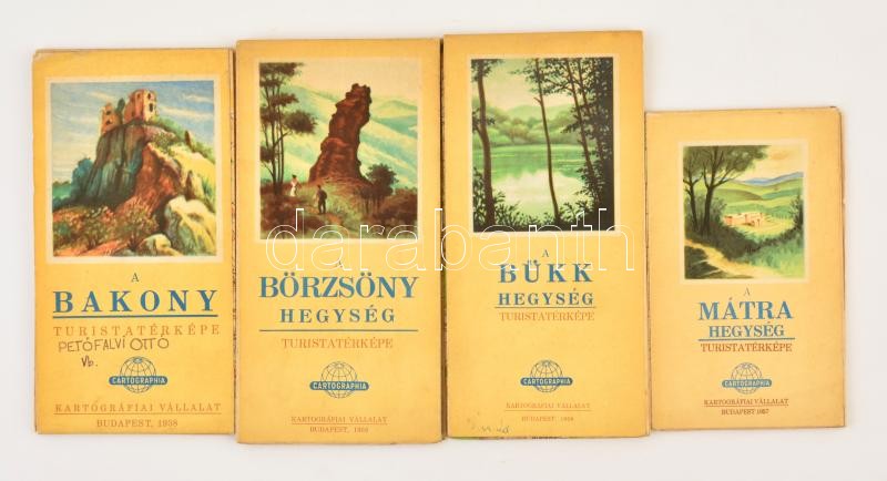 1957-1958 4 db turistatérkép (Börzsöny, Bükk, Bakony, Mátra.) Bp.,195... https://www.darabanth.com/de/354-Fernauktion/354.0/Kunst-Dokumente-andere-Sammelgebiete/Landkarten~500029/1957-1958-4-db-turistaterkep-Borzsony-Bukk-Bakony-Matra-Bp-1958-Kartografia-81x52-c~II2017653