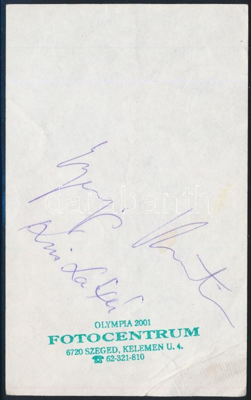 Beschreibung: Egerszegi Krisztina olimpiai bajnok úszó és Kiss László edző aláírásai Egerszegit ábrázoló fotón
