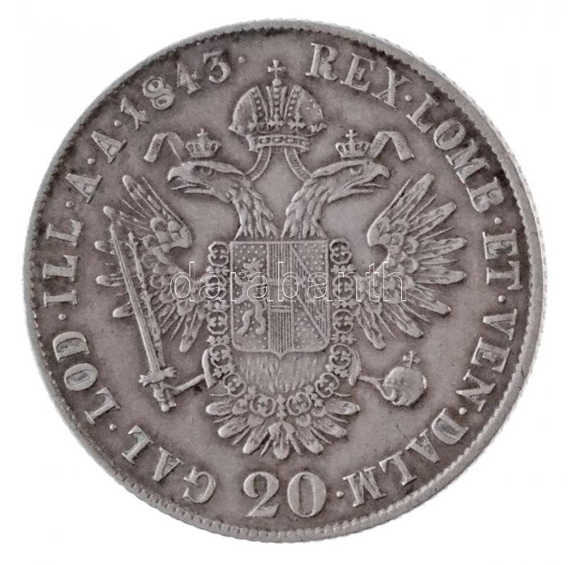 Austria 1843C 20... https://www.darabanth.com/de/354-Fernauktion/354.0/Numismatik/Weltweit-Munzen~1500013/Ausztria-1843C-20kr-Ag-Ferdinand-T1-2--Austria-1843C-20-Kreuzer-Ag-Ferdinand-CAU-XF-Krause-~II2019339