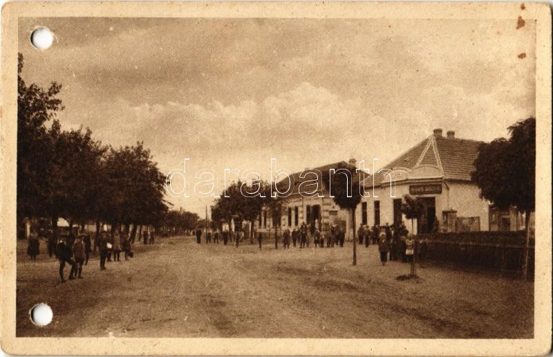 Beschreibung: Nagysurány, Surany; utcakép, üzlet / street view, shop (lyukasztott / punched holes)