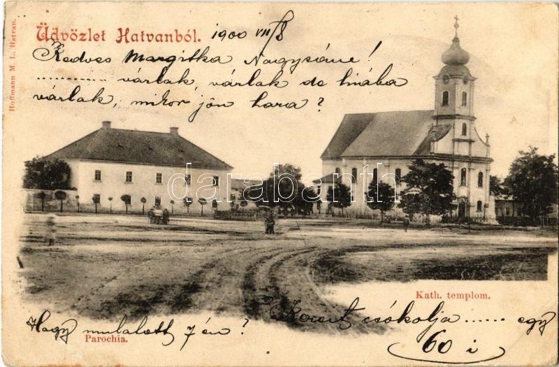 Beschreibung: 1900 Hatvan, Római katolikus templom, Parókia. Kiadja Hoffmann M. L. (EK)