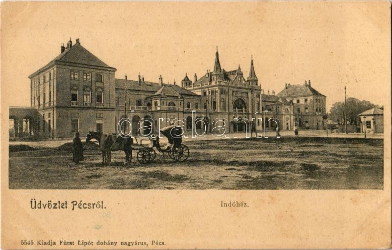 1907 Pécs, Indóház, Vasútállomás, fiáker. Kiadja Fürst Lipót 5545. https://www.darabanth.com/de/355-Fernauktion/355.0/Ansichtskarten/Ungarn~1000005/1907-Pecs-Indohaz-Vasutallomas-fiaker-Kiadja-Furst-Lipot-5545~II2026082