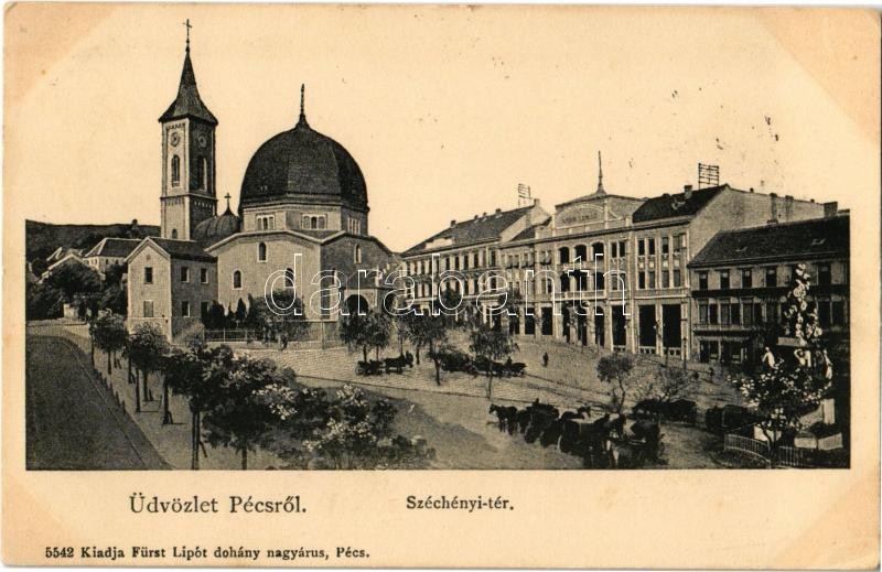 1907 Pécs, Széchenyi tér, Belvárosi templom (Dzsámi), Nádor szálloda. ... https://www.darabanth.com/de/355-Fernauktion/355.0/Ansichtskarten/Ungarn~1000005/1907-Pecs-Szechenyi-ter-Belvarosi-templom-Dzsami-Nador-szalloda-Kiadja-Furst-Lipot-55~II2026067