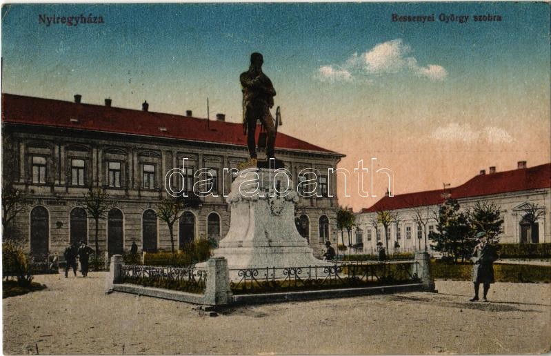 1921 Nyíregyháza, Bessenyei György szobra, Glück Ignác üzlete (EK) https://www.darabanth.com/de/355-Fernauktion/355.0/Ansichtskarten/Ungarn~1000005/1921-Nyiregyhaza-Bessenyei-Gyorgy-szobra-Gluck-Ignac-uzlete-EK~II2031179