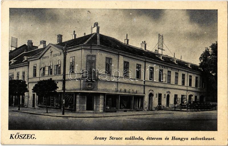 1943 Kőszeg, Arany Strucc szálloda és étterem, Hangya Szövetkezet üzle... https://www.darabanth.com/de/355-Fernauktion/355.0/Ansichtskarten/Ungarn~1000005/1943-Koszeg-Arany-Strucc-szalloda-es-etterem-Hangya-Szovetkezet-uzlete-es-sajat-kiadasa~II2025181