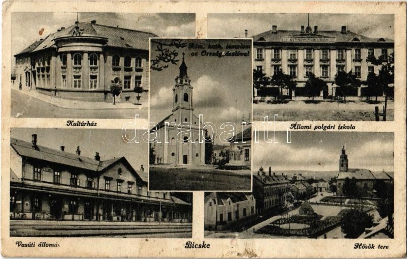 Bicske, Kultúrház, Állami polgári iskola, Hősök tere, Római katolikus ... https://www.darabanth.com/de/355-Fernauktion/355.0/Ansichtskarten/Ungarn~1000005/Bicske-Kulturhaz-Allami-polgari-iskola-Hosok-tere-Romai-katolikus-templom-az-Orszagzasz~II2024520