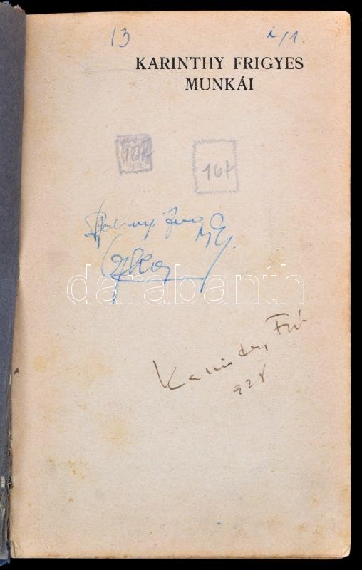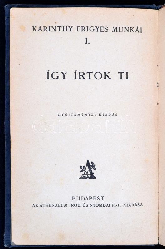 Karinthy Frigyes: Így írtok ti. Bp., é.n. Athenaeum. Aláírt példány! S... https://www.darabanth.com/de/355-Fernauktion/355.0/Bucher/Bucher-Andere-kuriositaten~1500019/Karinthy-Frigyes-Igy-irtok-ti-Bp-en-Athenaeum-Alairt-peldany-Serult-egeszvaszon-k~II2029304