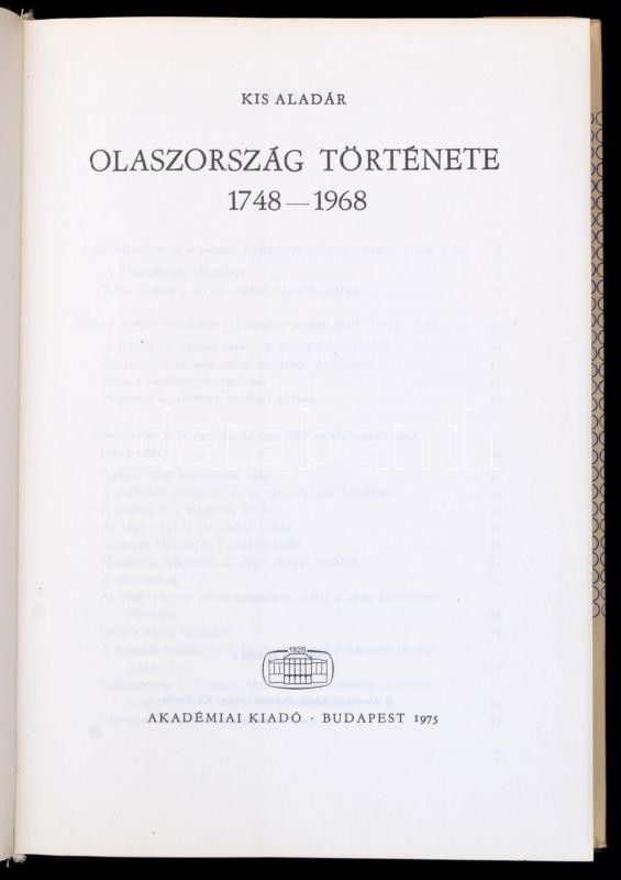 Kiss Aladár: Olaszország története 1748-1968. Bp., 1975. Akadémiai. Ki... https://www.darabanth.com/de/355-Fernauktion/355.0/Bucher/Bucher-Geschichte~1500005/Kiss-Aladar-Olaszorszag-tortenete-1748-1968-Bp-1975-Akademiai-Kiadoi-vaszonkotesben-~II2025849