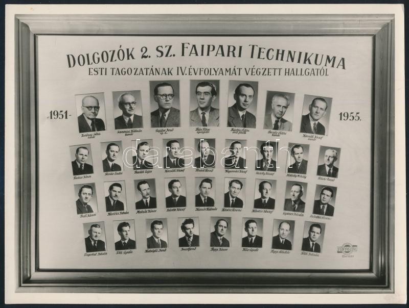 1955 Dolgozók 2. sz. Faipari Technikuma tanárai és végzős hallgatói, k... https://www.darabanth.com/de/355-Fernauktion/355.0/Fotografie/Foto~500020/1955-Dolgozok-2-sz-Faipari-Technikuma-tanarai-es-vegzos-hallgatoi-kistablo-nevesitett-por~II2024832