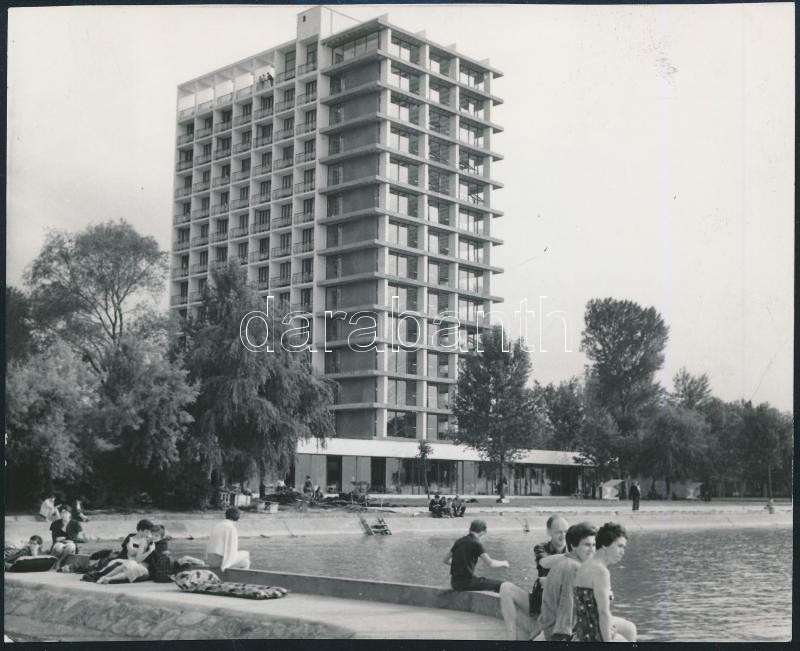 Beschreibung: 1966 Siófok, új szálloda, feliratozott, pecséttel jelzett sajtófotó, 10ú13 cm