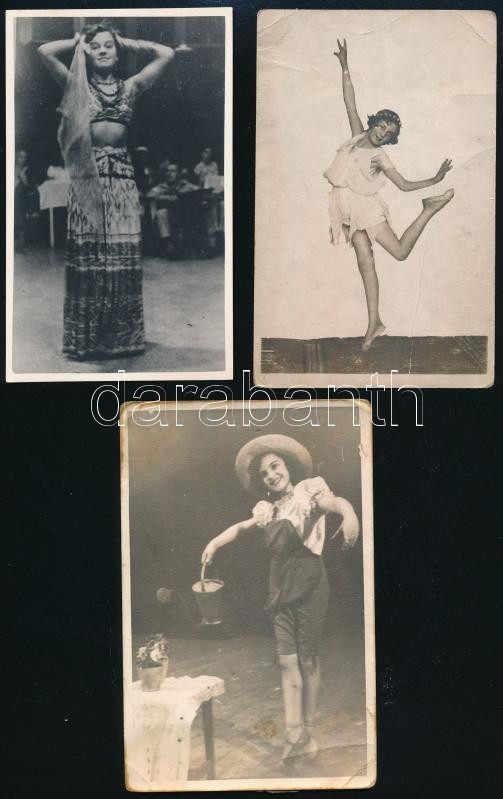 Táncművészek, 5 db fotólap, némelyik felületén törésnyom, 9×14 cm https://www.darabanth.com/de/355-Fernauktion/355.0/Fotografie/Foto~500020/Tancmuveszek-5-db-fotolap-nemelyik-feluleten-toresnyom-9C39714-cm~II2030400