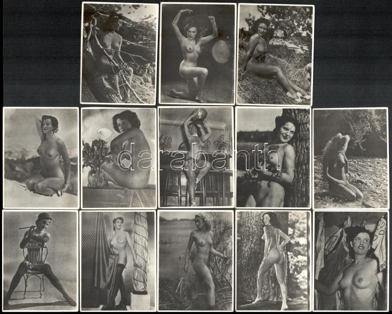 Beschreibung: cca 1968 A férfi tárcák rejtett titkai, trafikokban árusított fotók, szolidan erotikus felvételek, 13 db fénykép, 9x6 cm