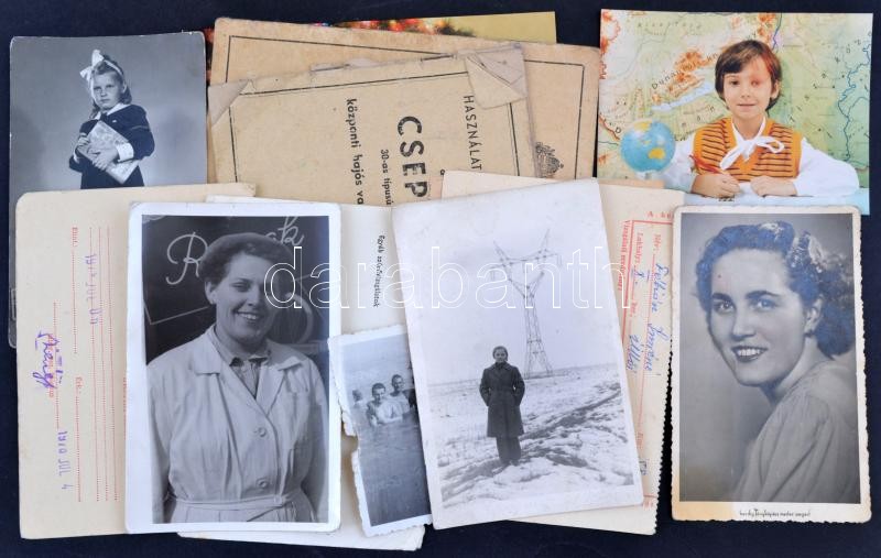 Beschreibung: Vegyes papírrégiség tétel: képeslapok, iratok, fotók, stb., érdekes, átnézésre érdemes anyag