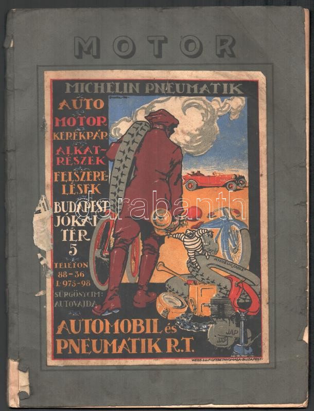 cca 1926 Automobil és Pneumatik Ipari és Kereskedelmi Rt. Árukatalógus... https://www.darabanth.com/de/355-Fernauktion/355.0/Kunst-Dokumente-andere-Sammelgebiete/Drucksachen~500029/cca-1926-Automobil-es-Pneumatik-Ipari-es-Kereskedelmi-Rt-Arukatalogus-Bp-Weiss-L-es-F-ny-~II2029025