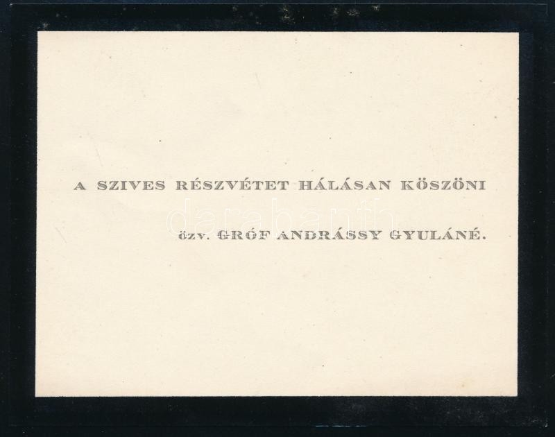 cca 1929 Gróf Andrássy Gyuláné férje halála miatti részvétnyilvánítást... https://www.darabanth.com/de/355-Fernauktion/355.0/Kunst-Dokumente-andere-Sammelgebiete/Drucksachen~500029/cca-1929-Grof-Andrassy-Gyulane-ferje-halala-miatti-reszvetnyilvanitast-megkoszono-kar~II2027399