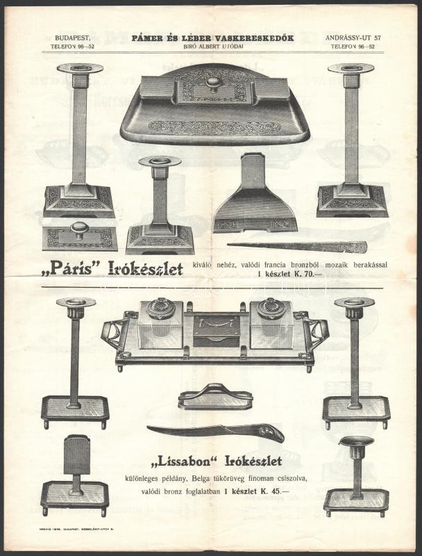 cca 1920 Bp. Andrássy út, Pámer és Léber Vaskereskedők dekoratív rajzo... https://www.darabanth.com/de/355-Fernauktion/355.0/Kunst-Dokumente-andere-Sammelgebiete/Historische-Dokumenten-Handschriften~500018/cca-1920-Bp-Andrassy-ut-Pamer-es-Leber-Vaskereskedok-dekorativ-rajzos-prospektusa~II2026867