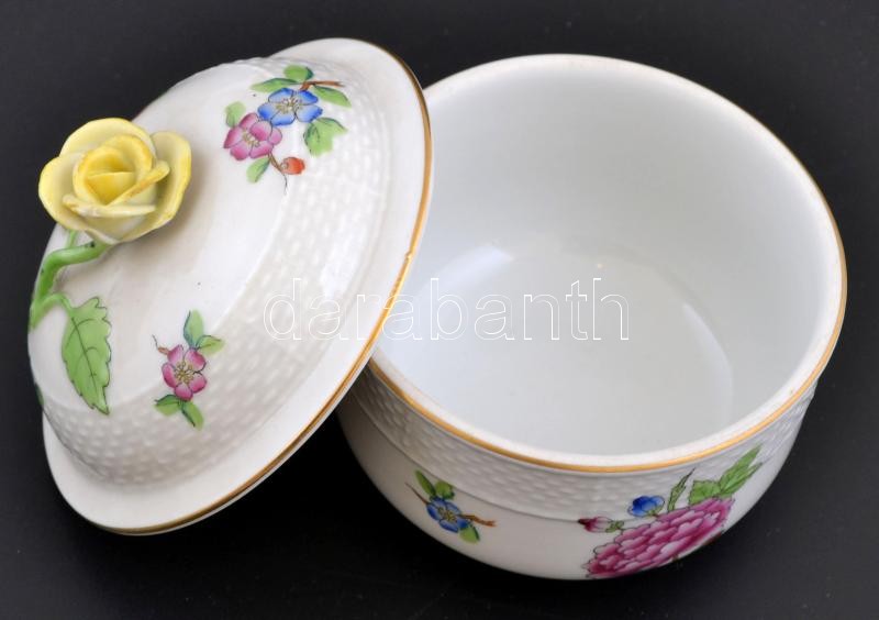 Beschreibung: Herendi Eton mintás rózsás bonbonier, kézzel festett, jelzett, kopásnyomokkal, m:10 cm