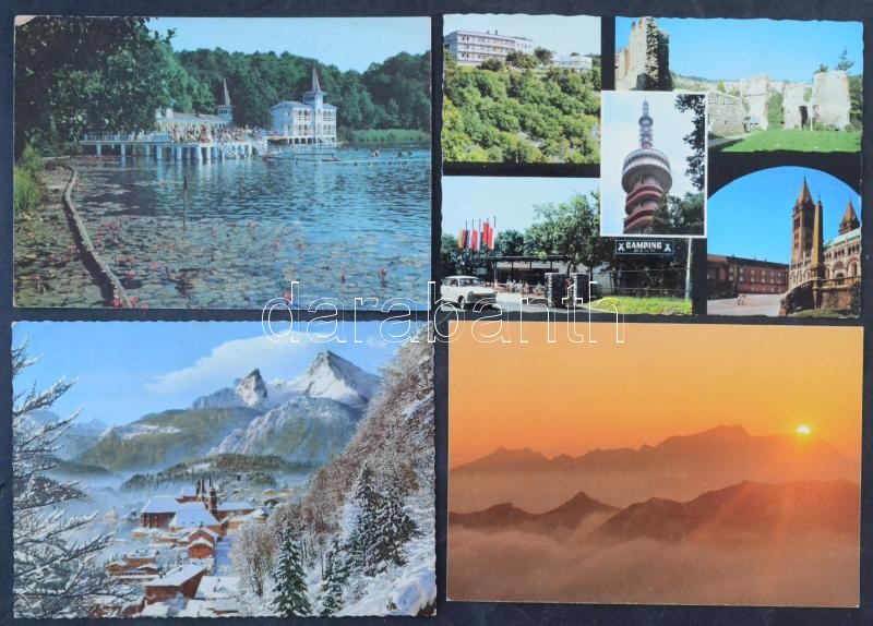 Egy doboznyi (kb. 300-350 db) MODERN magyar és külföldi városképes lap és motívumlap vegyesen / Cca. 300-350 MODERN Hungarian and European town-view postcards and motive cards mixed in a box
