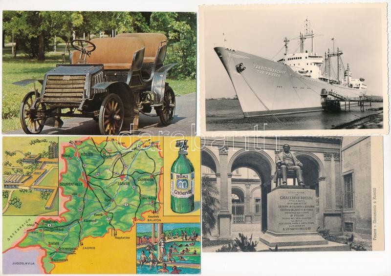 Kb. 300 db VEGYES magyar és külföldi motívum képeslap (reklám, közlekedés, régi mesterségek, üdvözlőlapok, szobrok, népviselet, stb.), az 1910-es évektől az 1980-as évekig / Cca. 300 MIXED motive cards (advertisement, means of transport, old professions, greeting cards, sculptures, folklore, etc.) from the 1910's to the 1980's