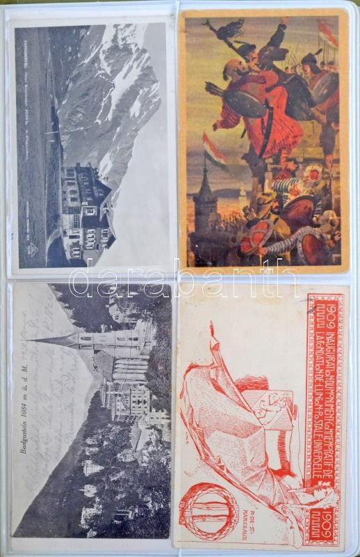 40 db főleg RÉGI motívumlap és városképes lap zöld képeslapalbumban / 40 mainly pre-1945 motive cards and town-view postcards in a green postcard album