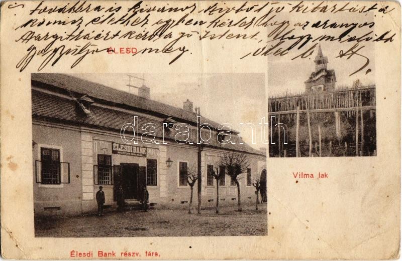 1910 Élesd, Alesd; Vilma lak, Élesdi Bank rt. / villa, bank (fa) https://www.darabanth.com/de/356-Fernauktion/356.0/Ansichtskarten/Siebenburgen~1500006/1910-Elesd-Alesd-Vilma-lak-Elesdi-Bank-rt-villa-bank-fa~II1963309