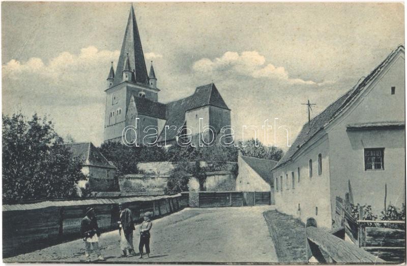 1915 Nagydisznód, Heltau, Cisnadie; Ev. Kirchenkastell von der Süd-Ost-Seite. Photogr. E. Fischer. Lichtdruck v. Jos. Drotleff / Evangélikus erődtemplom délkelet felől / Lutheran fortified church (EB)