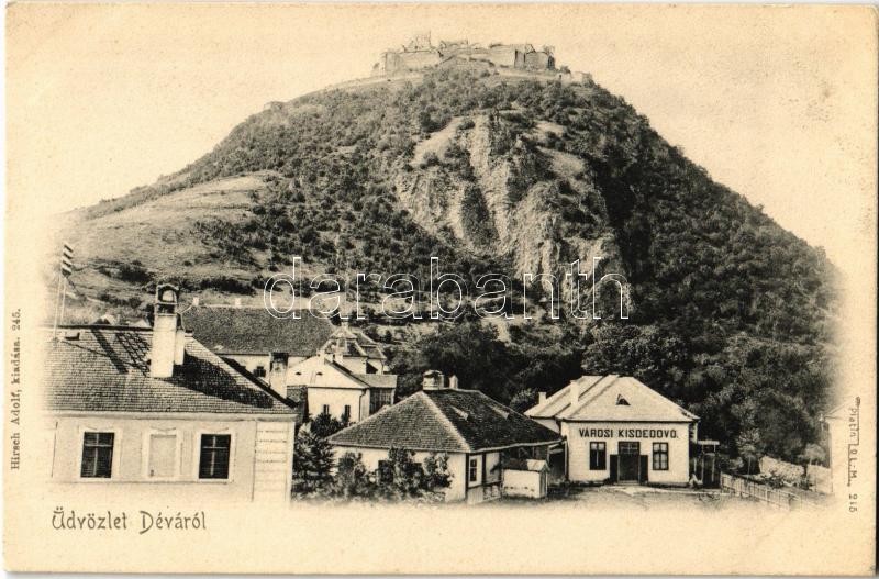 Beschreibung: Déva, Déva vára, Városi kisdedóvó, óvoda. Kiadja Hirsch Adolf 245. / Cetatea Deva / castle, nursery