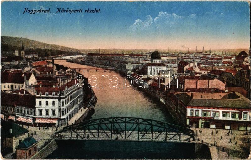 Nagyvárad, Oradea; Körösparti részlet, zsinagóga, Gazdasági és Iparban... https://www.darabanth.com/de/356-Fernauktion/356.0/Ansichtskarten/Siebenburgen~1500006/Nagyvarad-Oradea-Korosparti-reszlet-zsinagoga-Gazdasagi-es-Iparbank-River-Cris-bridge-~II2015393