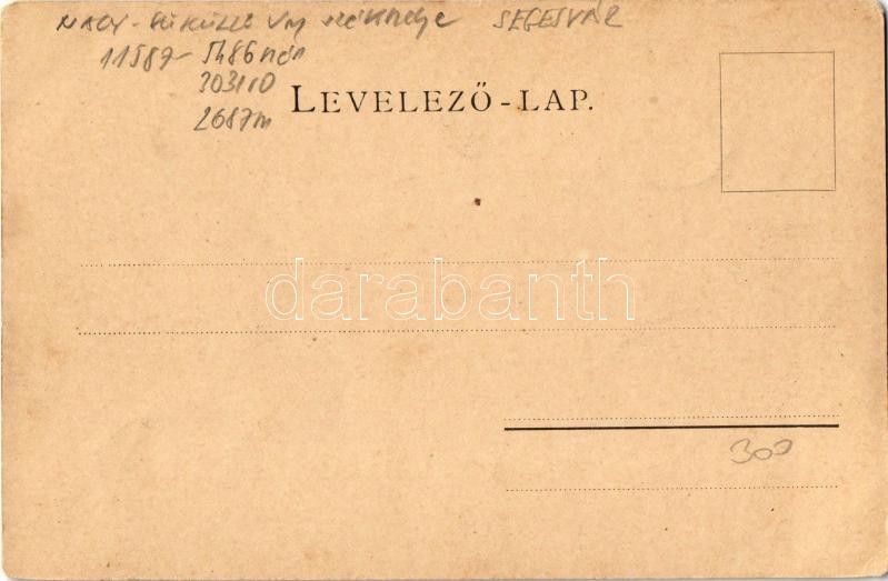 Beschreibung: Segesvár, Schässburg, Sighisoara; látkép a városházával. Kiadja Fritz Teutsch / Totalansicht / general view, town hall (EK)