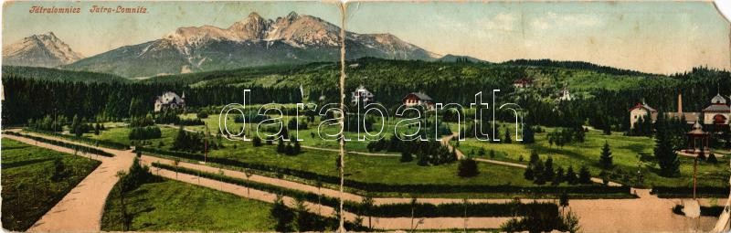 1904 Tátralomnic, Tatranská Lomnica (Tátra, Magas Tátra, Vysoké Tatry); kihajtható panorámalap nyaralókkal. Cattarino Sándor kiadása 181. sz. / folding panoramacard with villas (EM)
