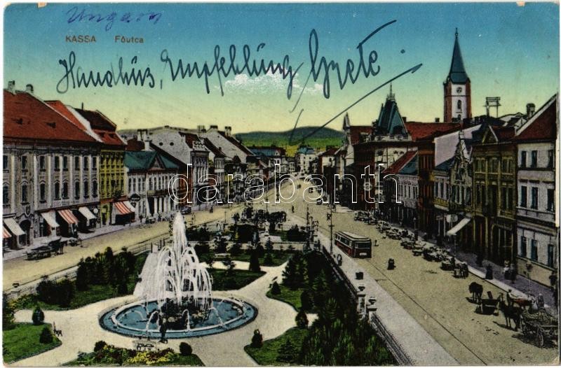 1918 Kassa, Kosice; Fő utca, üzletek, villamos / main street, shops, t... https://www.darabanth.com/de/356-Fernauktion/356.0/Ansichtskarten/Slowakei~1500007/1918-Kassa-Kosice-Fo-utca-uzletek-villamos-main-street-shops-tram-Rb~II2036587