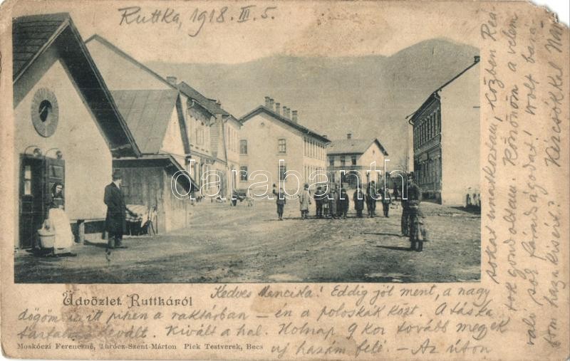 1918 Ruttka, Vrútky; utcakép. Moskóczi Ferenczné kiadása / street view... https://www.darabanth.com/de/356-Fernauktion/356.0/Ansichtskarten/Slowakei~1500007/1918-Ruttka-Vrutky-utcakep-Moskoczi-Ferenczne-kiadasa-street-view-EM~II1840449