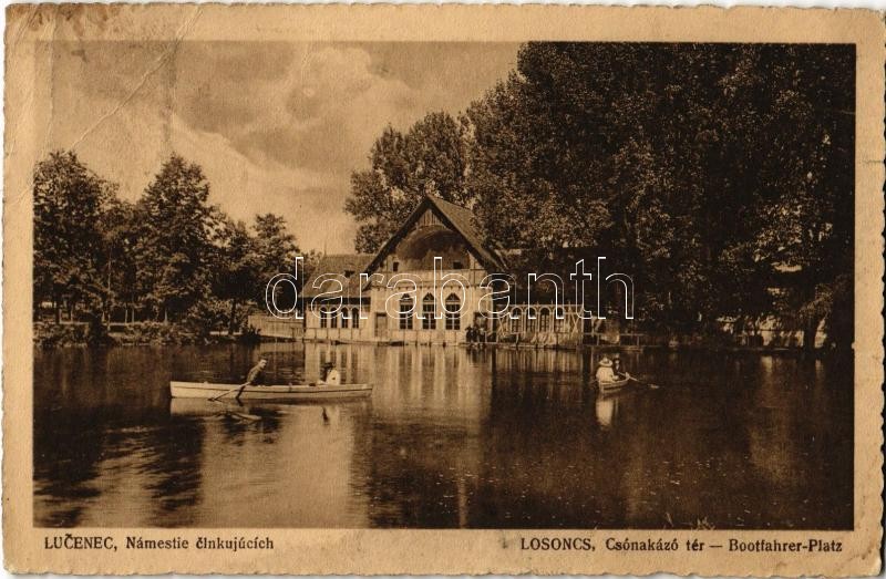 1928 Losonc, Lucenec; Námestie clnkujúcích / Csónakázó tér, evezős csó... https://www.darabanth.com/de/356-Fernauktion/356.0/Ansichtskarten/Slowakei~1500007/1928-Losonc-Lucenec-Namestie-clnkujucich-Csonakazo-ter-evezos-csonakok-Bootfahrer-Pl~II2036730