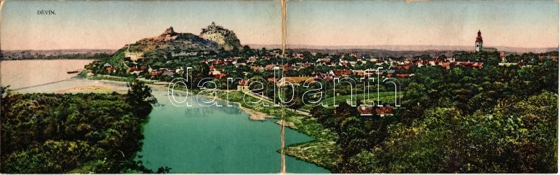 Beschreibung: Dévény, Theben a. d. Donau, Devín (Pozsony, Bratislava); panoramacard