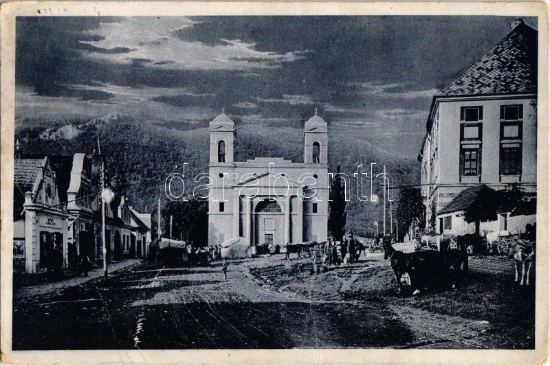 Beschreibung: Jolsva, Jelsava; Római katolikus templom, piaci árusok. Kiadja Vojtech Weiss / Catholic church, market vendors (EB)