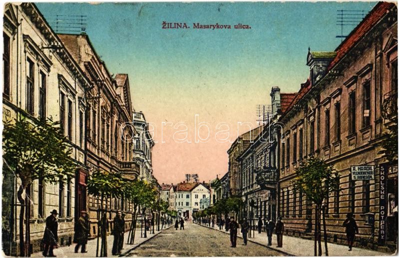 Zsolna, Zilina; Masarykova ulica / Masaryk utca, A. Hradil üzlete / st... https://www.darabanth.com/de/356-Fernauktion/356.0/Ansichtskarten/Slowakei~1500007/Zsolna-Zilina-Masarykova-ulica-Masaryk-utca-A-Hradil-uzlete-street-shops-EB~II2036160