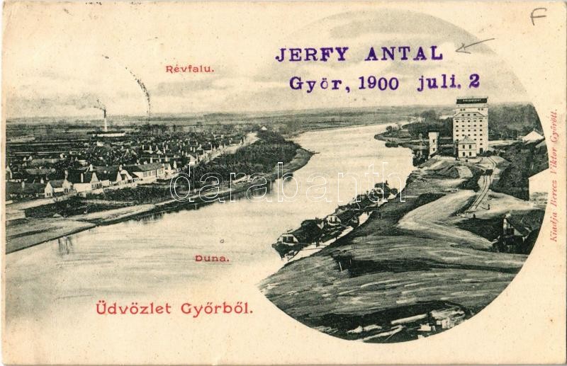 Beschreibung: 1900 Győr, Révfalu, Duna. Kiadja Berecz Viktor