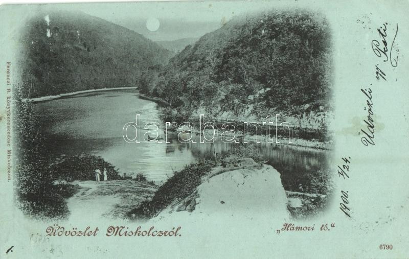 Beschreibung: 1900 Miskolc, Hámori tó. Kiadja Ferenczi B. (ragasztónyom / glue marks)