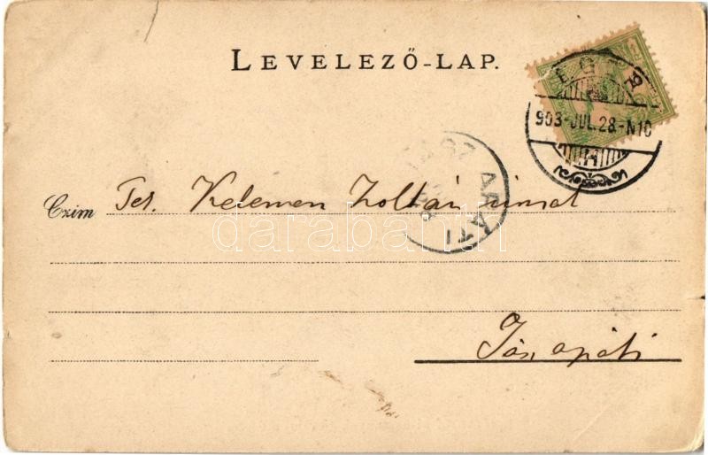Beschreibung: 1903 Eger, Angol kisasszonyok nevelőintézete. Kiadja a Baross nyomda. Art Nouveau, floral (kis szakadás / small tear)