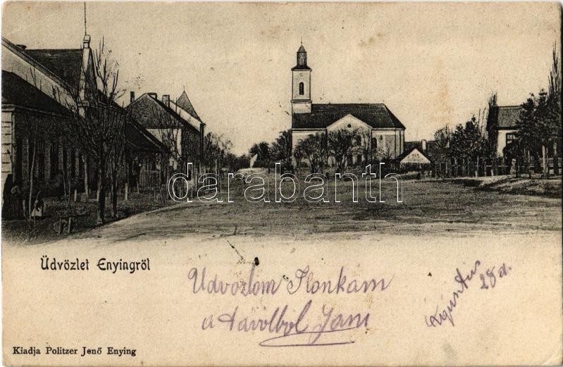 1905 Enying, tér, Református templom. Kiadja Politzer Jenő (EK) https://www.darabanth.com/de/356-Fernauktion/356.0/Ansichtskarten/Ungarn~1500005/1905-Enying-ter-Reformatus-templom-Kiadja-Politzer-Jeno-EK~II2040410