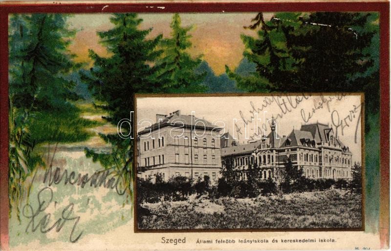 1907 Szeged, Állami felsőbb leányiskola és kereskedelmi iskola. Erdős ... https://www.darabanth.com/de/356-Fernauktion/356.0/Ansichtskarten/Ungarn~1500005/1907-Szeged-Allami-felsobb-leanyiskola-es-kereskedelmi-iskola-Erdos-litho-keret-forest-lith~II1938383