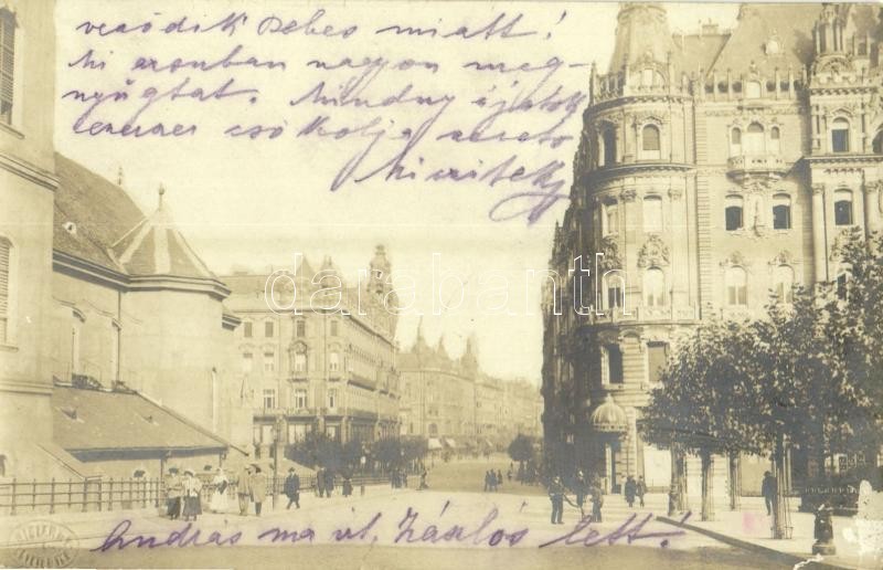 Beschreibung: 1916 Budapest V. Erzsébet híd pesti hídfő a Belvárosi Nagyboldogasszony Főplébánia templommal. photo