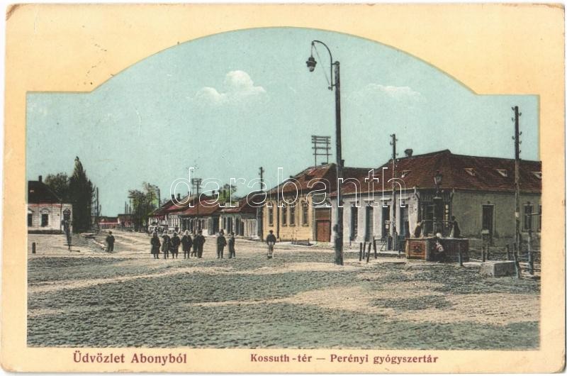 Abony, Kossuth tér, Perényi gyógyszertár, Havas Ignác üzlete, kút (EB) https://www.darabanth.com/de/356-Fernauktion/356.0/Ansichtskarten/Ungarn~1500005/Abony-Kossuth-ter-Perenyi-gyogyszertar-Havas-Ignac-uzlete-kut-EB~II2041626