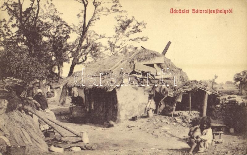 Beschreibung: Sátoraljaújhely, Zsolyomkai részlet, cigányputri, kunyhó meztelen cigány gyerekekkel, folklór. 59. Kiadja Lövy Adolf (EK)