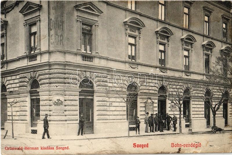 Szeged, Bohn vendéglő, étterem, Dreher sör reklámplakátja, férfi kerék... https://www.darabanth.com/de/356-Fernauktion/356.0/Ansichtskarten/Ungarn~1500005/Szeged-Bohn-vendeglo-etterem-Dreher-sor-reklamplakatja-ferfi-kerekparral-Grunwald-Her~II2038073