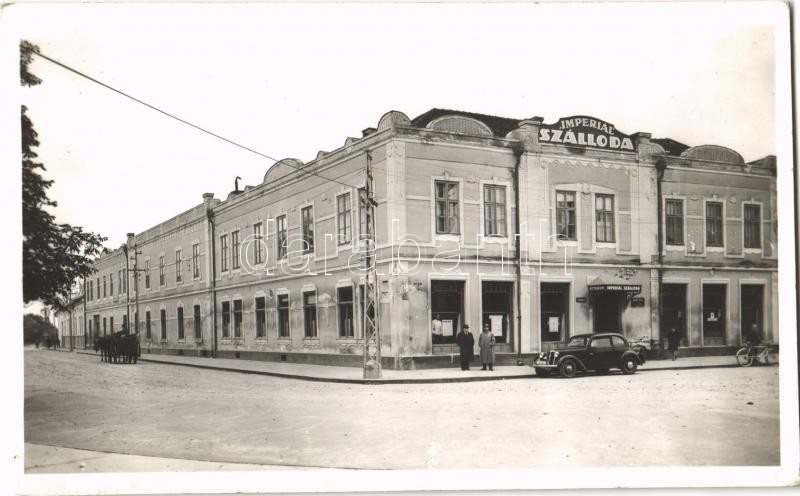 1942 Óbecse, Stari Becej; Imperial szálloda, automobil, kerékpár / hot... https://www.darabanth.com/de/356-Fernauktion/356.0/Ansichtskarten/Vojvodina~1500010/1942-Obecse-Stari-Becej-Imperial-szalloda-automobil-kerekpar-hotel-automobile-bicycle~II2042594